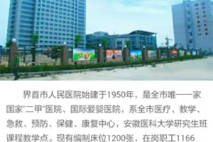 界首市人民醫(yī)院始建于一九五0年,系衛(wèi)生部批準(zhǔn)的“二級甲等綜合性醫(yī)院”,是全市...